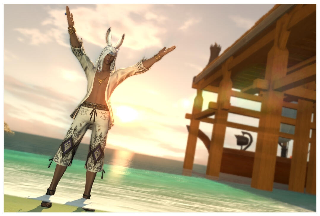 A rather flamboyant and sometimes airheaded viera that means well but never seems to realize when he is behaving a little too familiar with a new Eorzean. He truly believes that everyone is a friend, and simply wants to have fun.